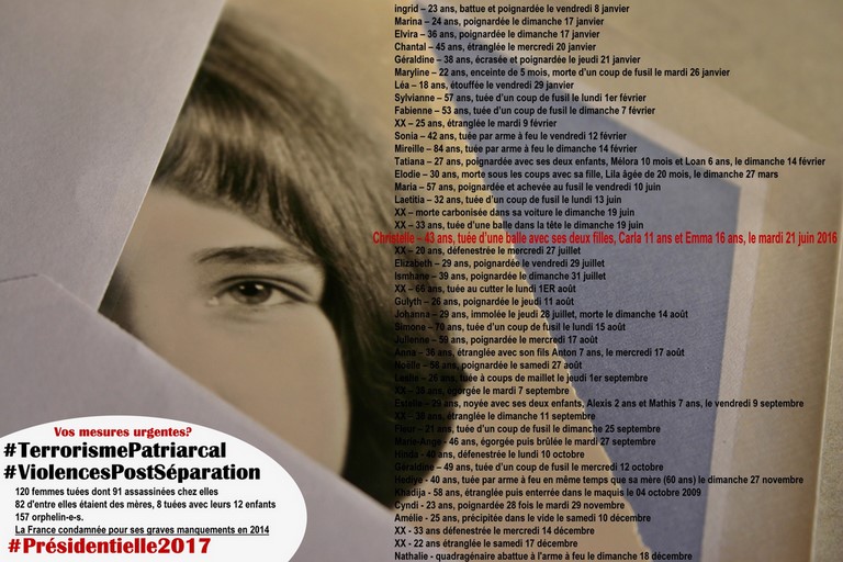 Le listing macabre des meurtres de femmes et d'enfants en 2016, établit par militantes de la page: www.facebook.com/feminicide