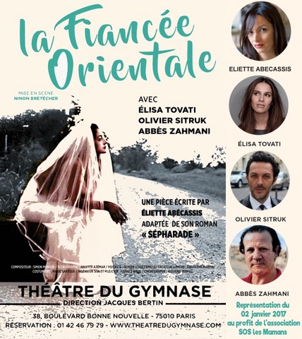« La Fiancée Orientale» une pièce écrite par Eliette Abécassis adaptée de son best-seller « SEPHARADE », avec Élisa Tovati, Olivier Sitruk, Abbès Zahmani.
